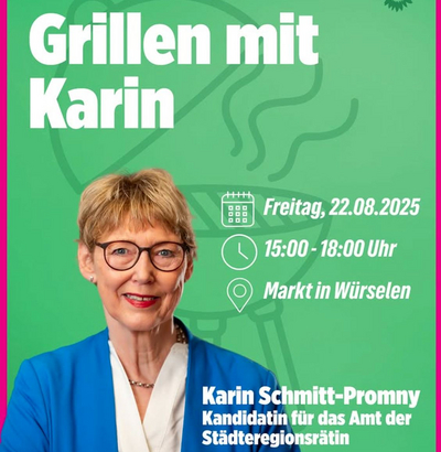 | Karin Schmitt-Promny grillt am Markt in Würselen
